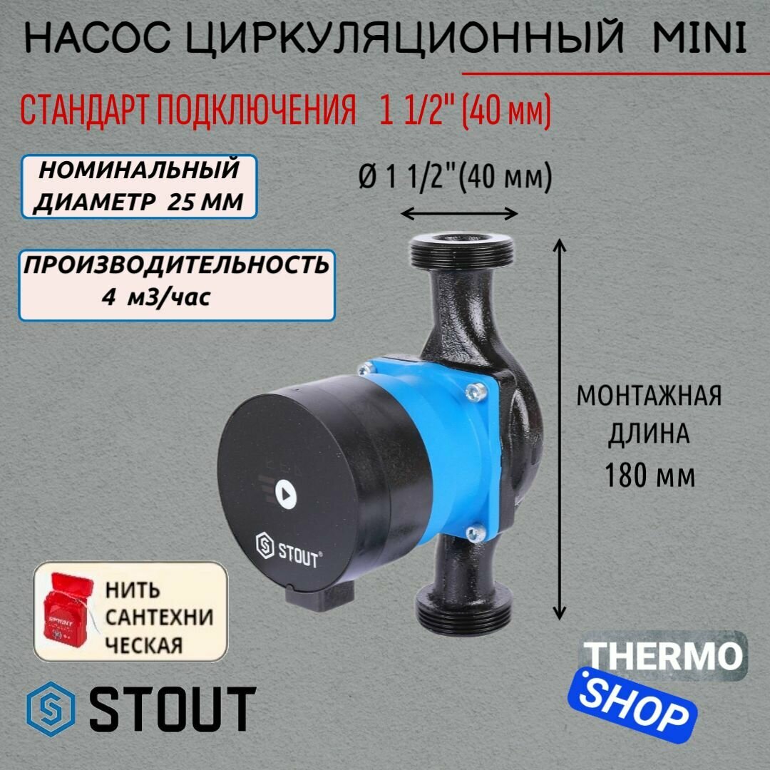 Циркуляционный насос Stout Mini 25/60-180 мм (SPC-0002-2560180)