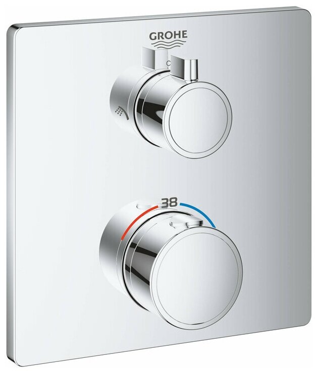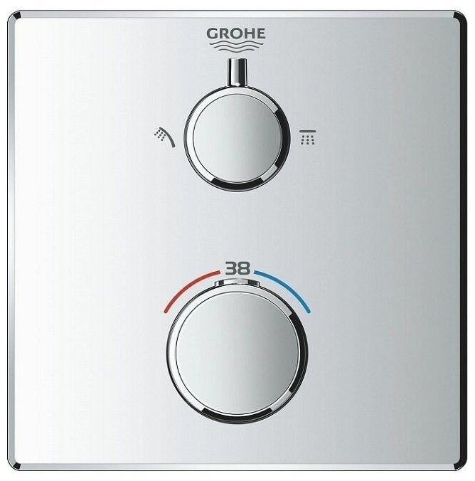 Смеситель Grohe термостатический Grohtherm 24079000 для душа с переключателем на 2 пол.вер./ручн.душ, квадратная интересное: