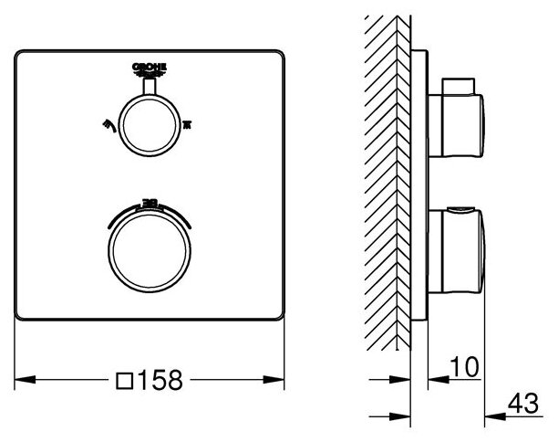 Купить Смеситель Grohe термостатический Grohtherm 24079000 для душа с переключателем на 2 пол.вер./ручн.душ, квадратная