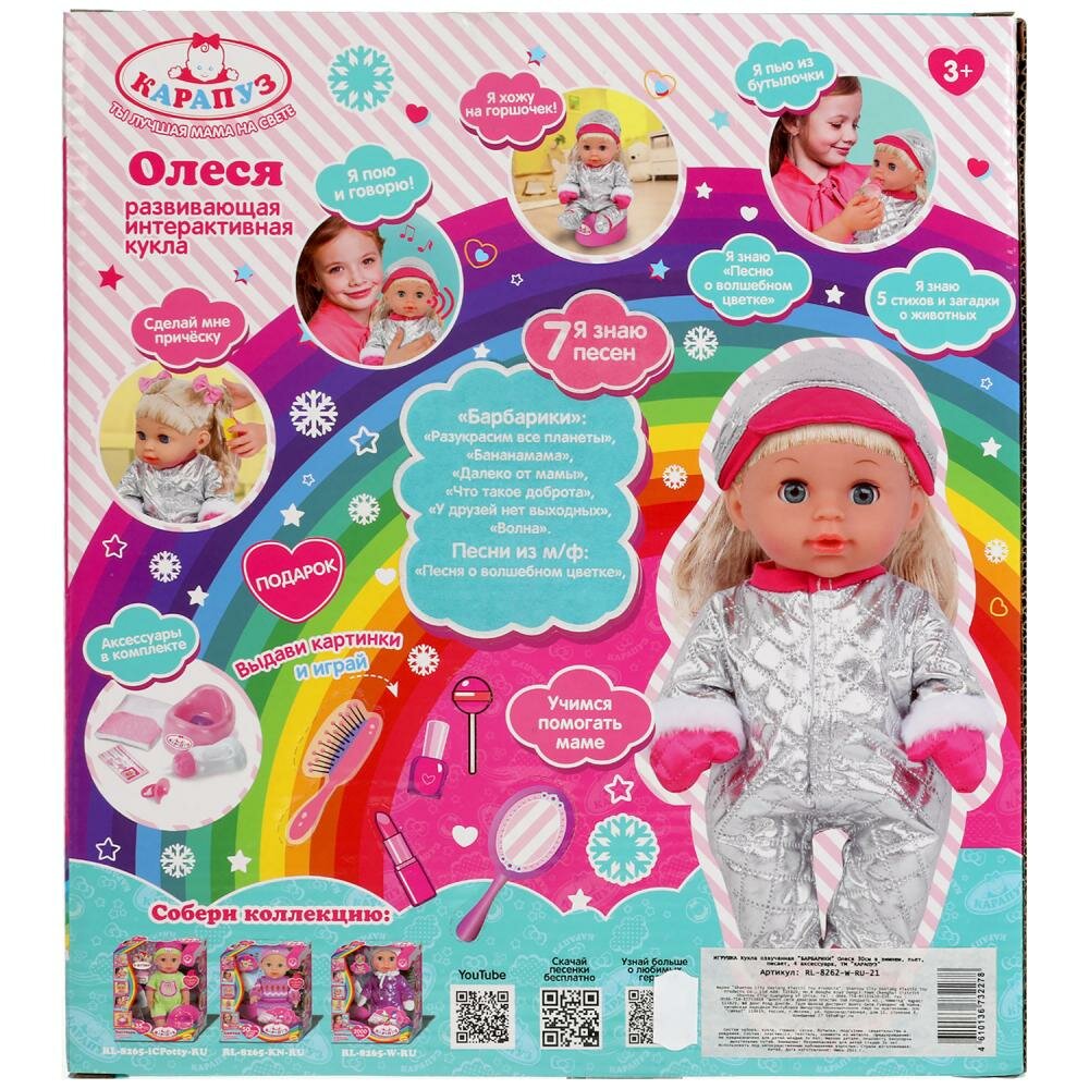 Игрушки карапуз Кукла озвуч барбарики Олеся 30см в зимнем, пьет,писает, 4акс карапуз интересное: