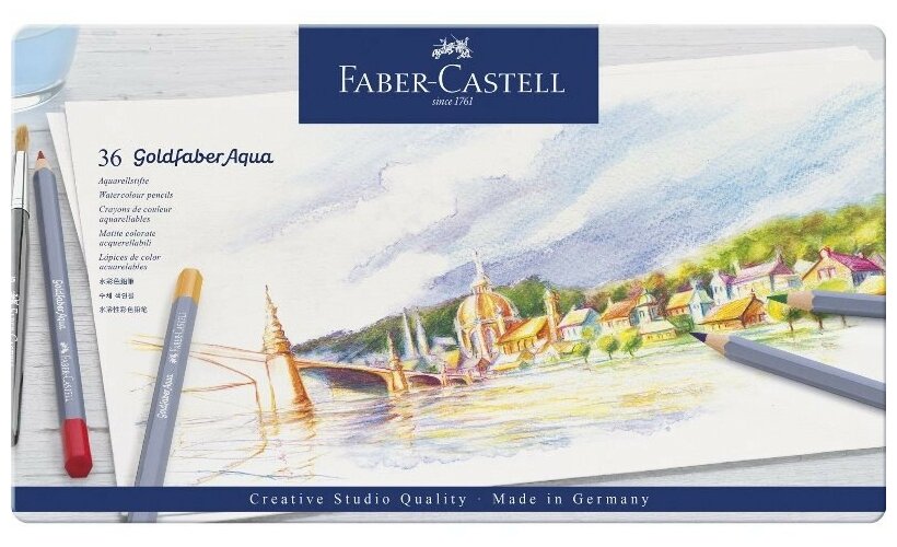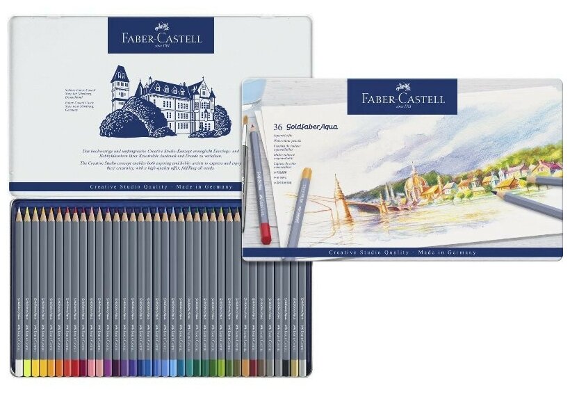 Карандаши акварельные художественные Faber-Castell "Goldfaber Aqua", 36цв., метал. коробка