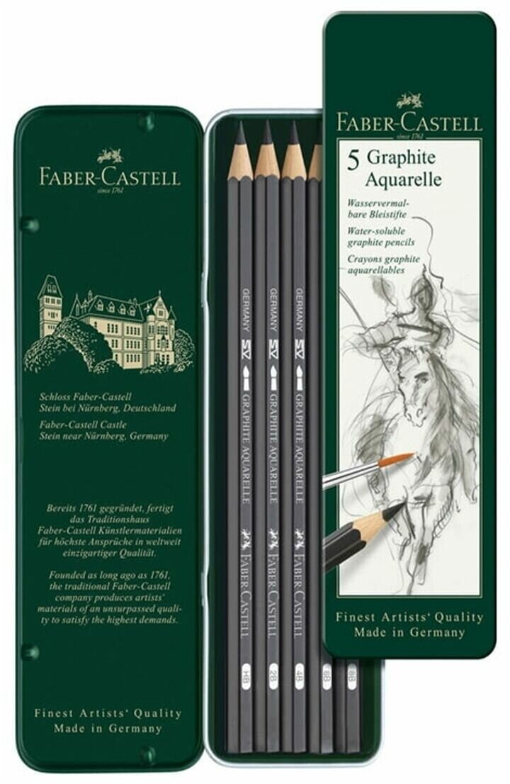 Набор карандашей ч/г акварельных Faber-Castell "Graphite Aquarelle", 5шт., HB-8B, заточ., метал. короб