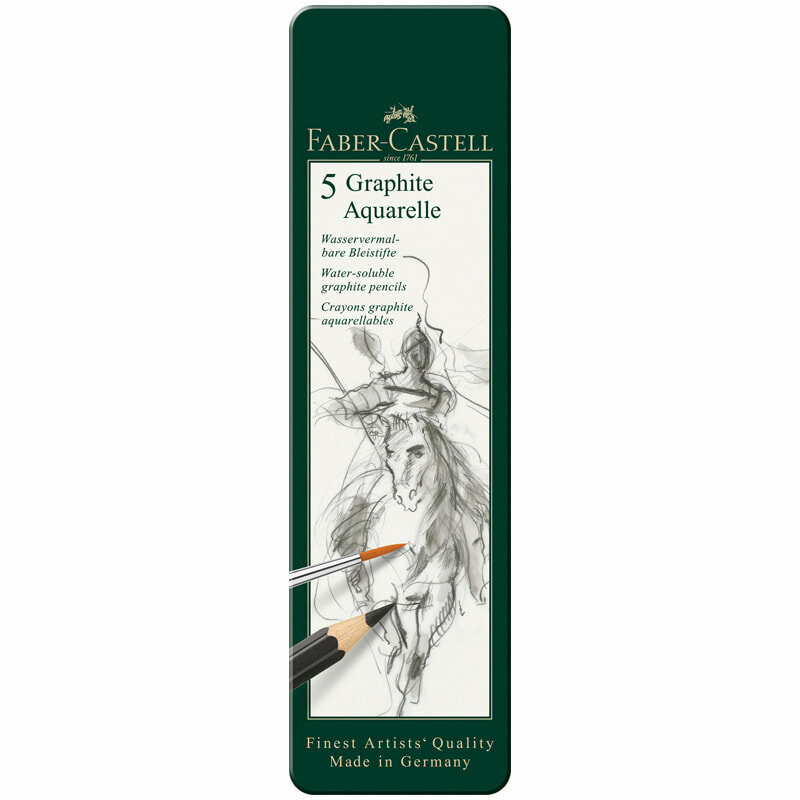 Карандаши графитные 5штук водоразмываемые, HB-8B, "Graphite Aquarelle, в металлическом пенале, артикул 117805 117805 Набор карандашей ч/г акварельных Faber-Castell "Graphite Aquarelle", 5шт., HB-8B, заточ., метал.кор