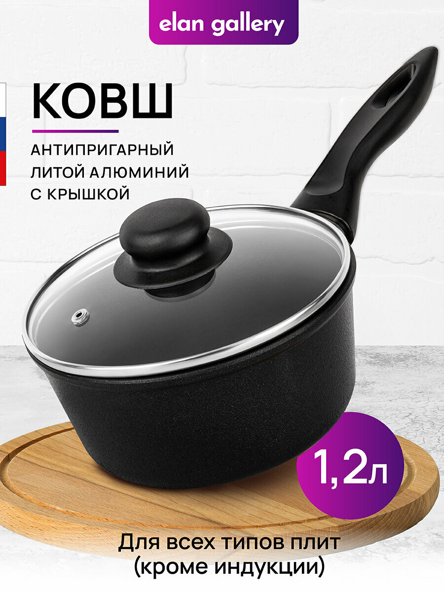 Ковш 1,2 л Elan Gallery гармония вкуса Черный Оникс с крышкой D16, с несъёмной ручкой интересное: