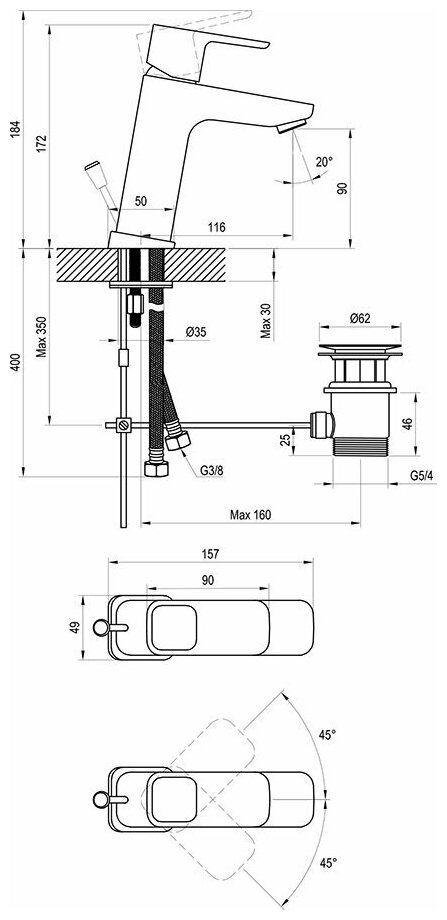 Смеситель для раковины Ravak 10° Free X070128 нержавеющая сталь