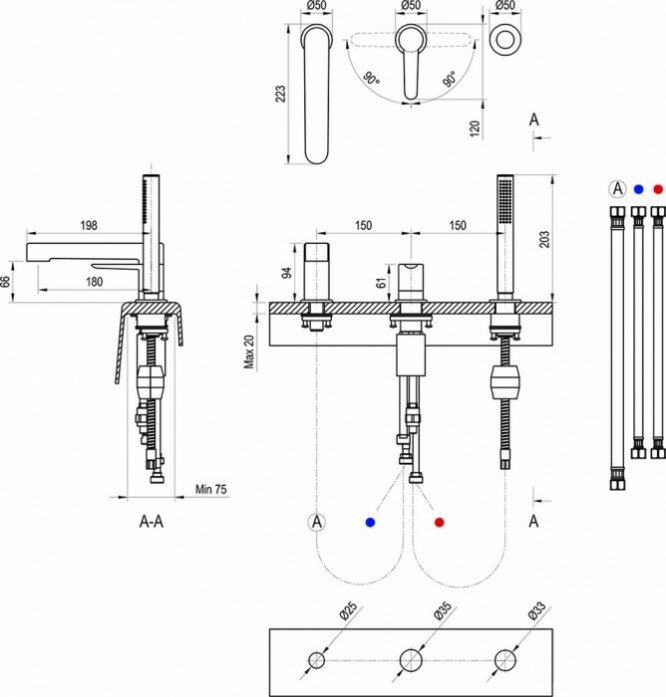 | Держатель для душевой лейки | на борт ванны |