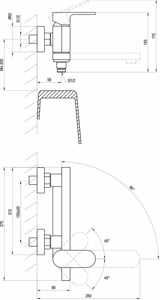Смеситель для ванны CR 022.00/150 150 мм