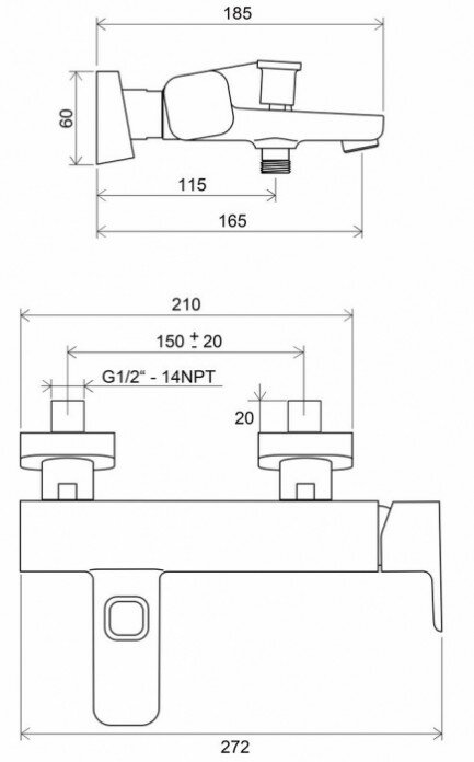 Смеситель для ванны/душа RAVAK 10° TD 022.00/150 настенный