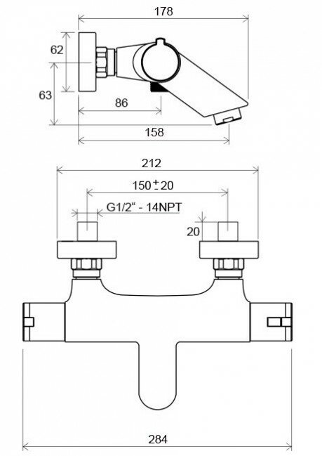 Смеситель для ванны термостатический RAVAK Termo TE 022.00/150 настенный