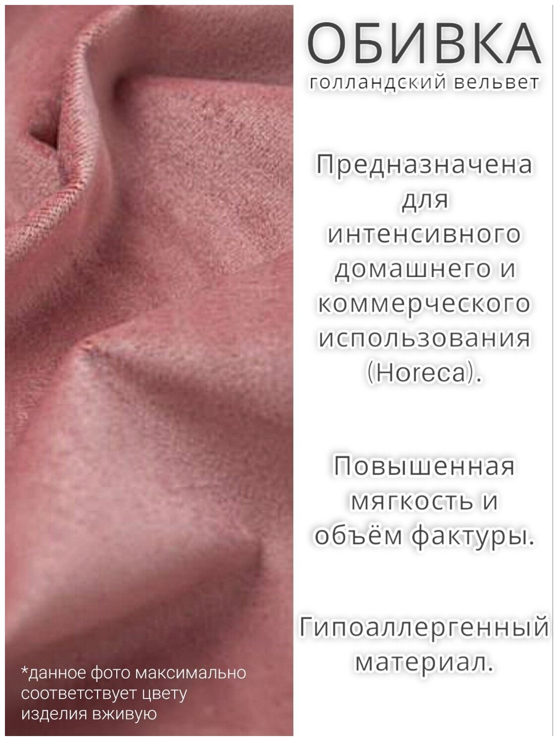 | Дополнительная информация | цвет обивки может немного отличаться от изображения на фотографии; велюр мебельный Evita |