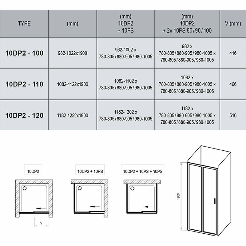 Душевая дверь Ravak 10DP2-100 белый + Транспарент