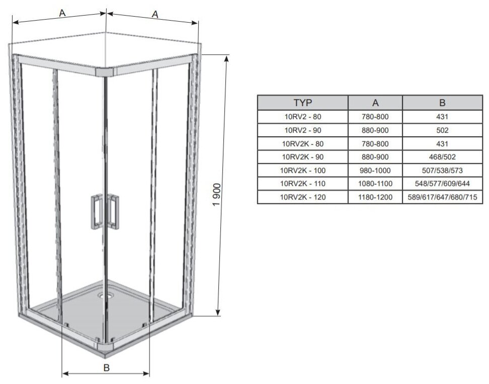Душевой уголок Ravak 10° 10RV2K-100 сатин + транспарент