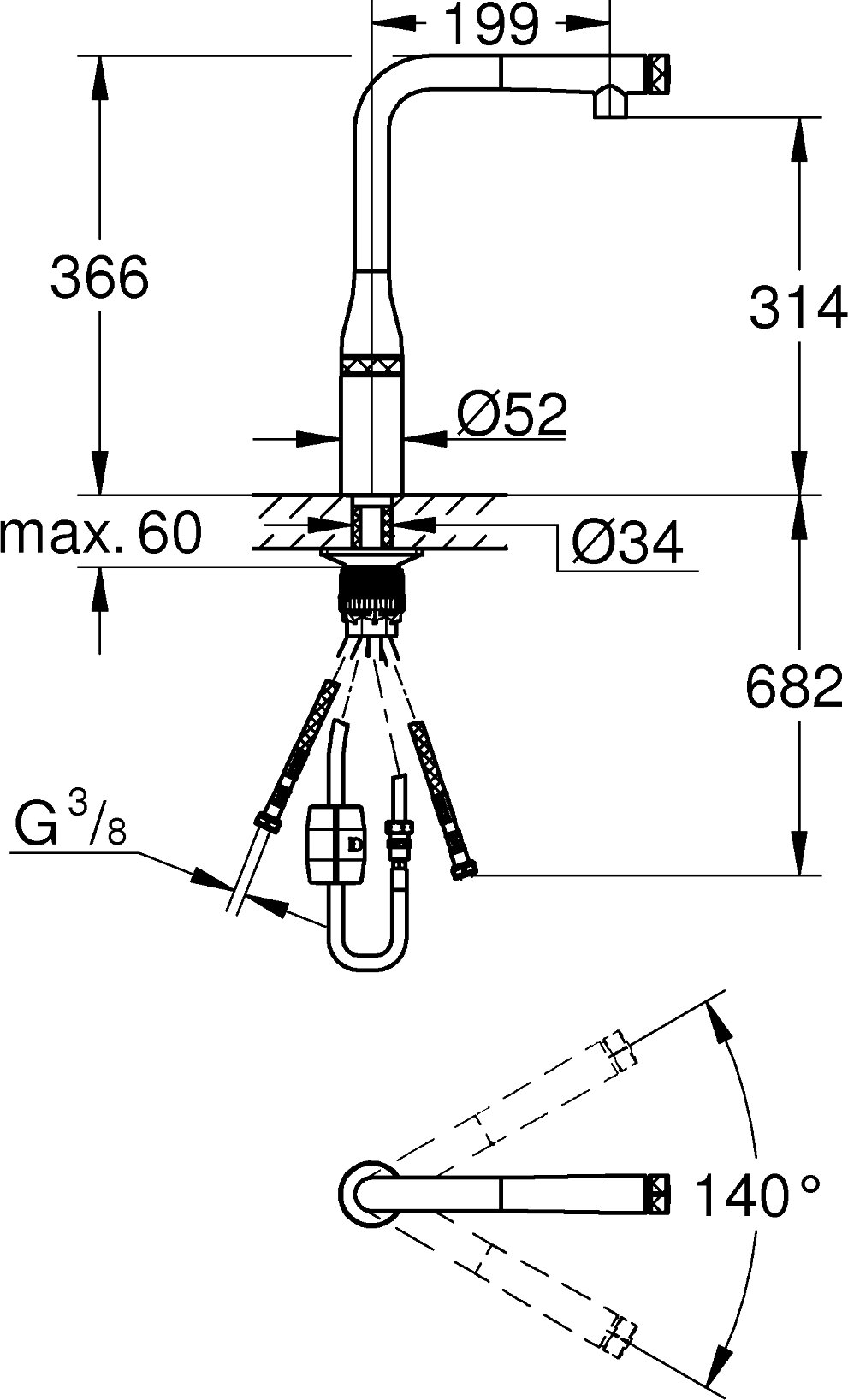 | Присоединительный размер | 3/8" |