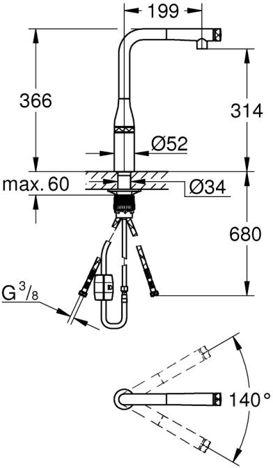 Смеситель для кухни GROHE Essence SmartControl с выдвижным L-образным изливом, хром 31615000