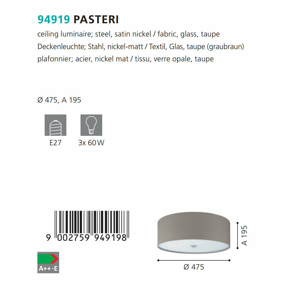 Ниже Вы можете прочитать отзывы на Потолочный светильник Eglo Pasteri 94919, ознакомится с подробными характеристиками, посмотреть интересные обзоры и фотографии на Потолочный светильник Eglo Pasteri 94919.