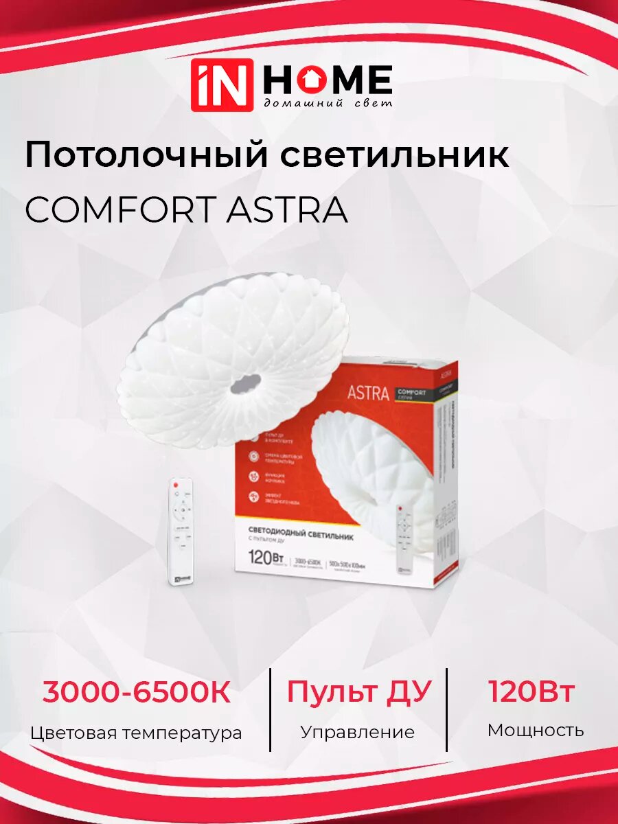 Светильник светодиодный COMFORT ASTRA 120Вт 230В 3000-6500К 9600лм 500х100мм с пультом ДУ IN HOME 4690612035024