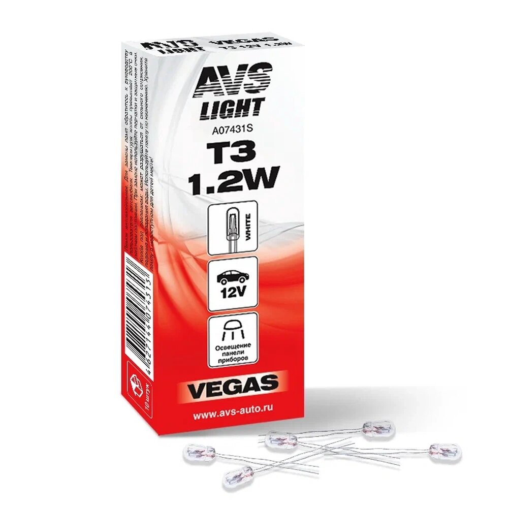 Купить Лампа AVS Vegas 12V. T3 1.2W (б/ц, усы 2см) BOХ 10шт.