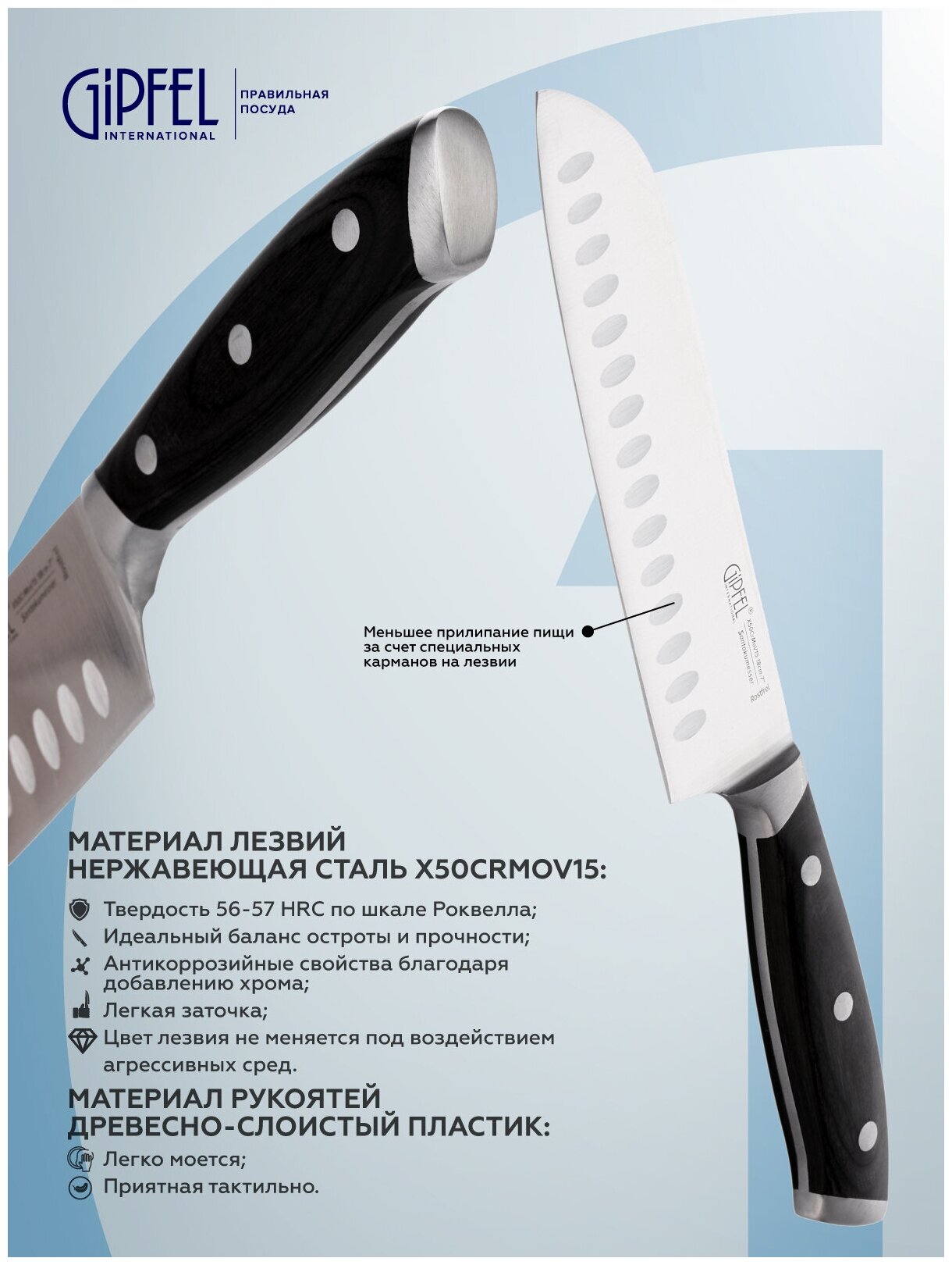 Нож поварской сантоку GIPFEL AMBASSADOR 50444 интересное: