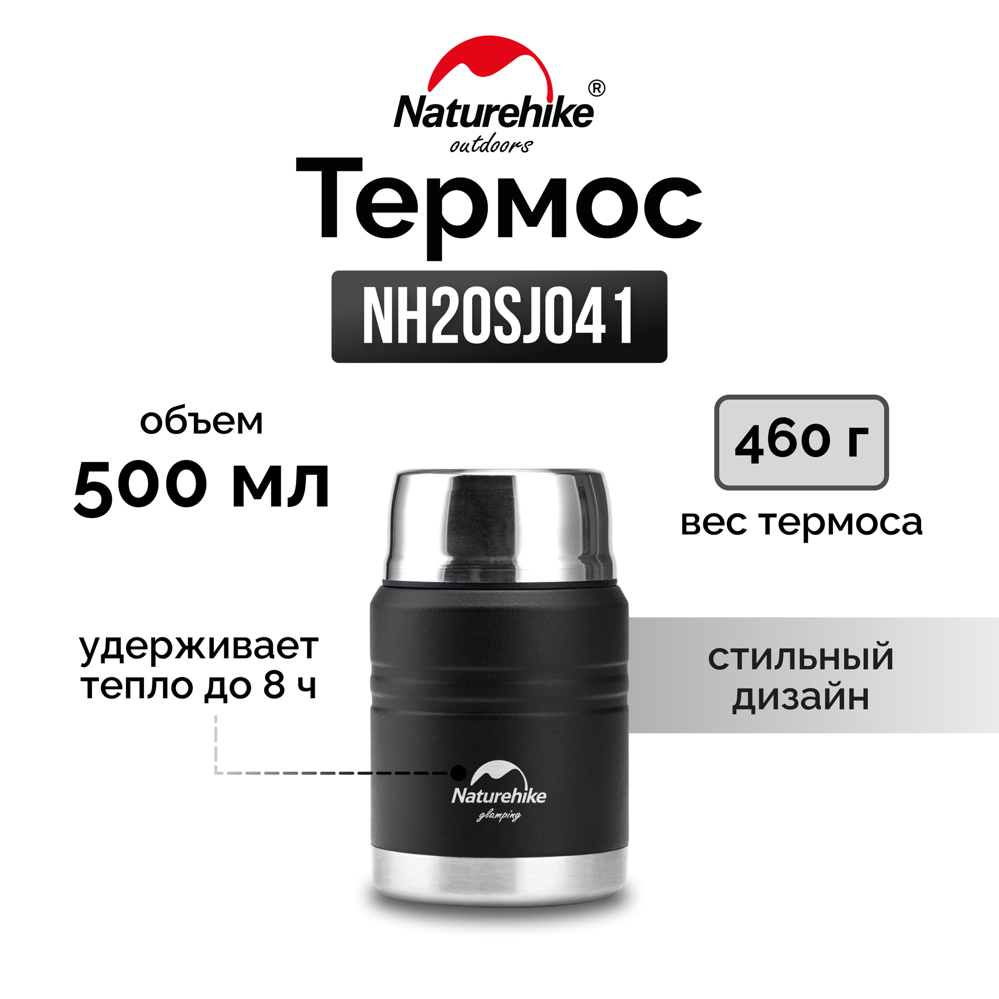 Термос Naturehike NH20SJ041 500мл (для еды) , черный, 6927595767467 интересное: