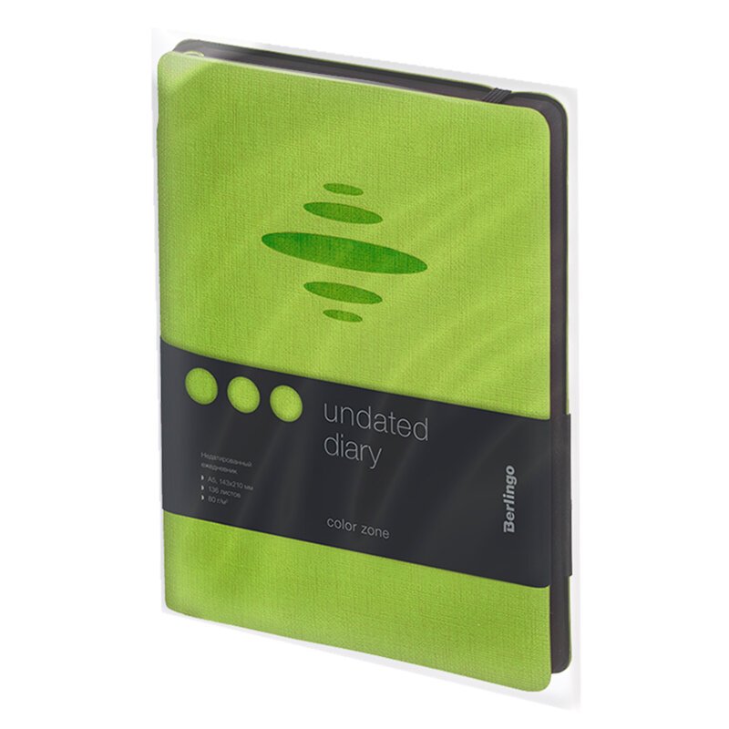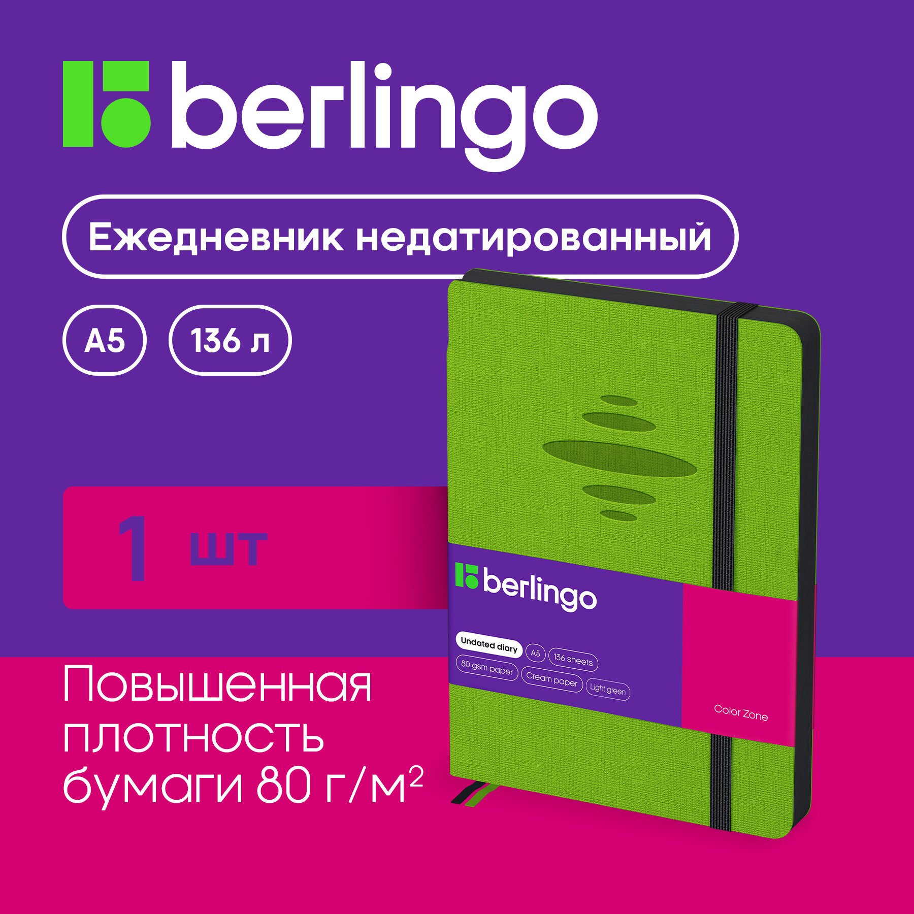 Ежедневник недатированный А5 Berlingo Color Zone (136 листов) обложка кожзам, черн. срез, с резинкой, салатовая (UD0_86504)