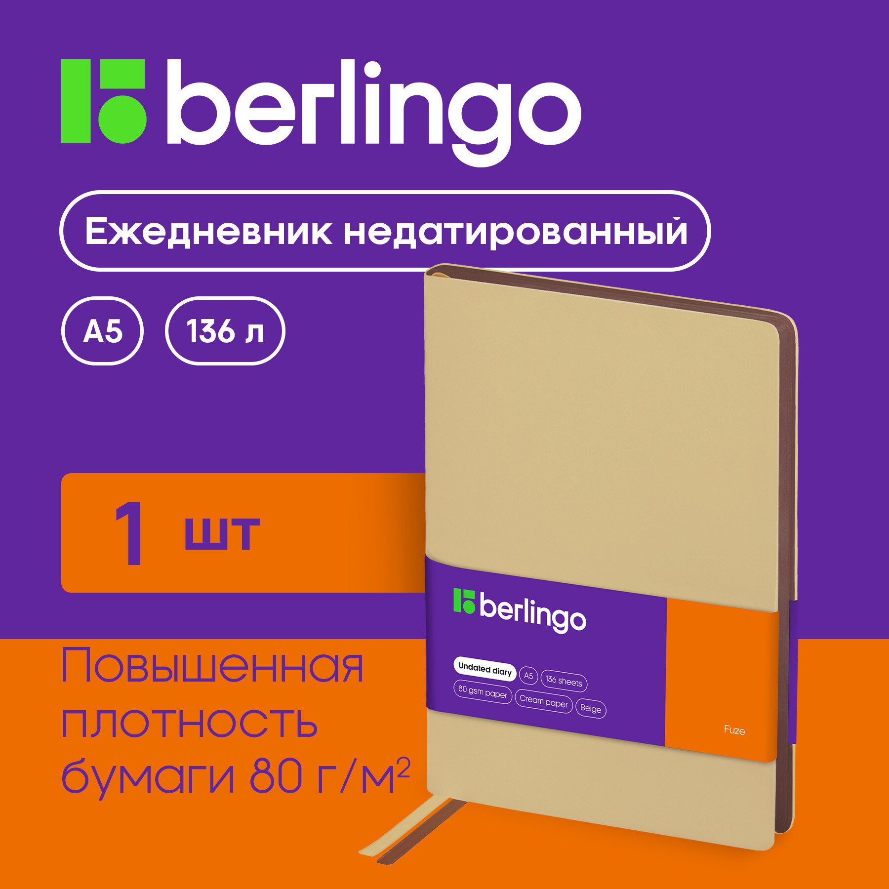 Купить Ежедневник недатированный Berlingo A5, 136 листов, кожзам, "Fuze", цветной срез, бежевый (UD0_87506)