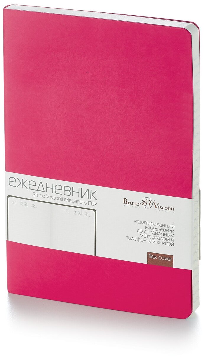 Ежедневник недатированный Bruno Visconti "MEGAPOLIS FLEX" гибкий, Soft touch, фуксия А5, Арт. 3-531/09 интересное: