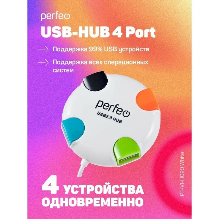 USB-концентратор Perfeo PF-VI-H020, разъемов: 4, белый.