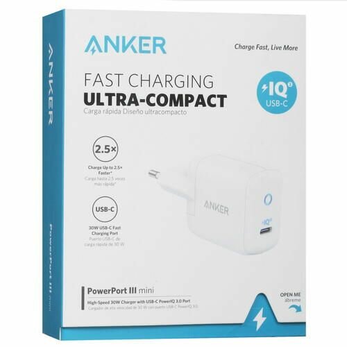 Сетевое зарядное устройство ANKER PowerPort III mini 30W USB-C белый.