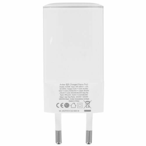 Сетевое зарядное устройство Anker PowerPort III Nano Pro 40W (A2038) белый