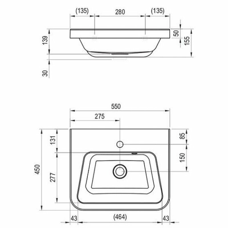 Умывальник подвесной из литого мрамора Ravak 10° 550 XJI01155000 белый c отверстиями