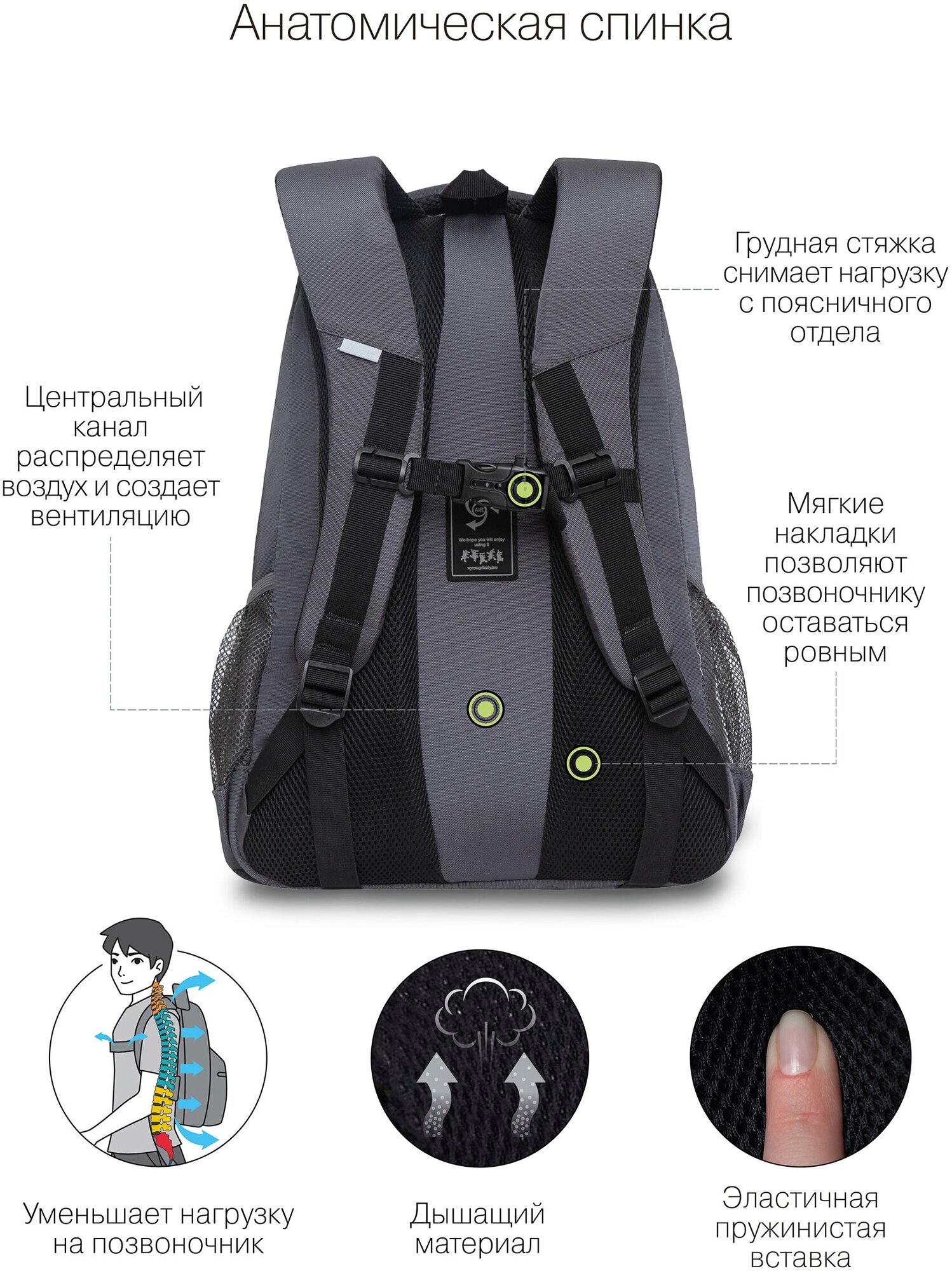 | Особенности | эргономичная спинка / ручка для переноски / светоотражающие элементы / водоотталкивающая пропитка / вентилируемая спинка / регулируемые лямки |