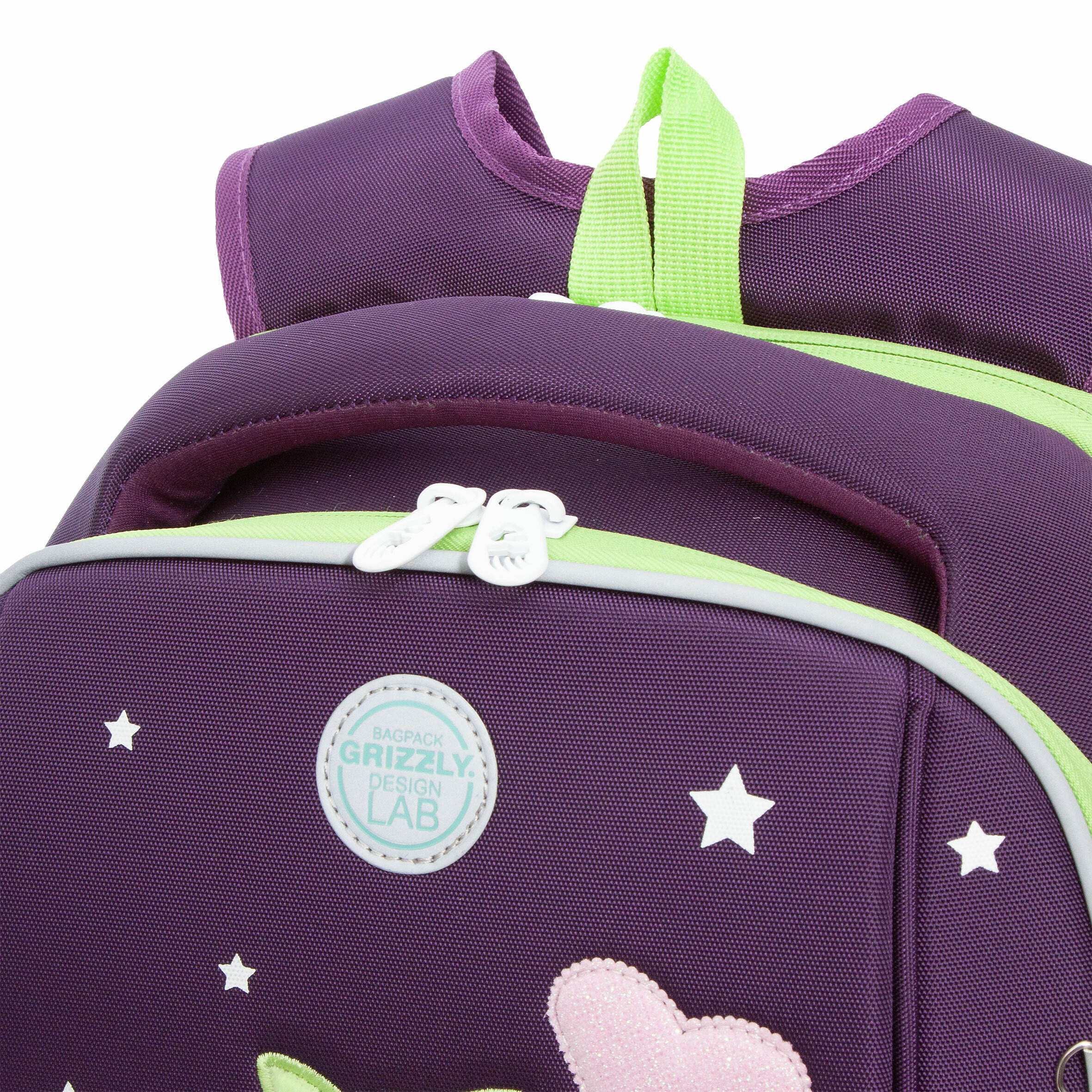 Рюкзак школьный с ортопедической спинкой Grizzly RAf-292-11 фиолетовый, на ножках, вес 950грамм, 2 отделения, 36x29x18см