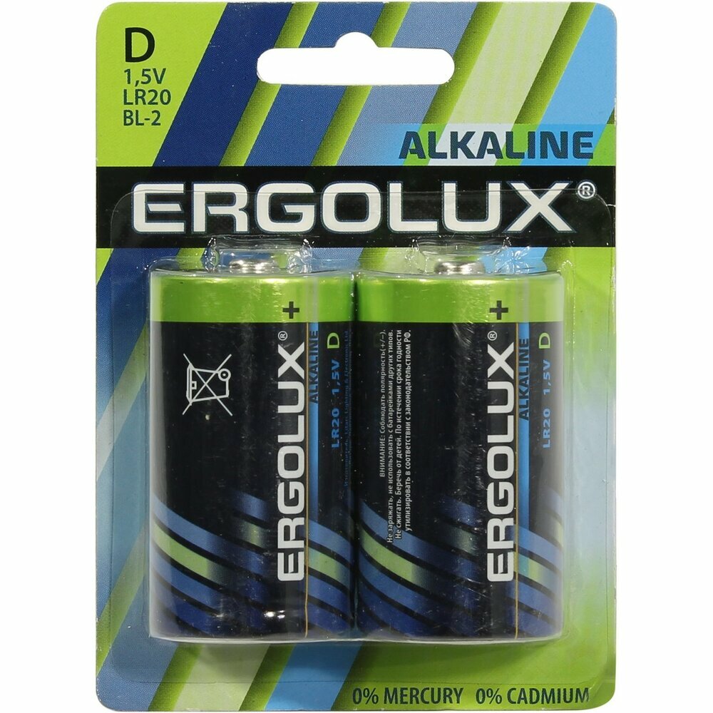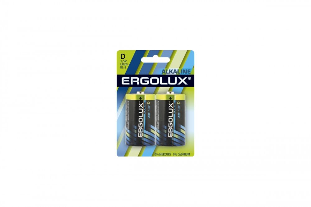Ergolux Батарейки ..LR20 Alkaline BL-2 LR20 BL-2, батарейка,1.5В 2 шт. в уп-ке