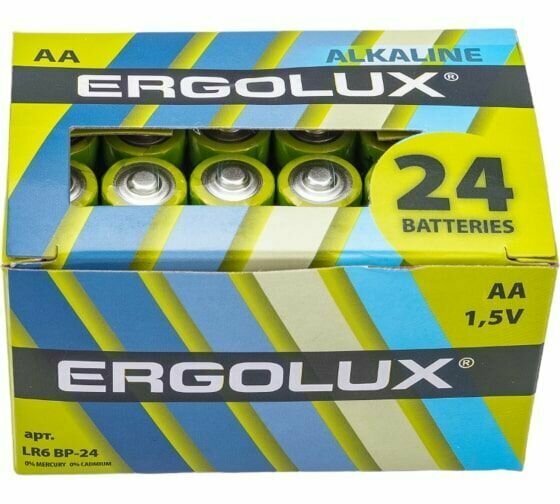 Батарейка алкалиновая Ergolux, AA, LR6-24BOX (LR6 BP-24), 1.5В, набор 24 шт. интересное: