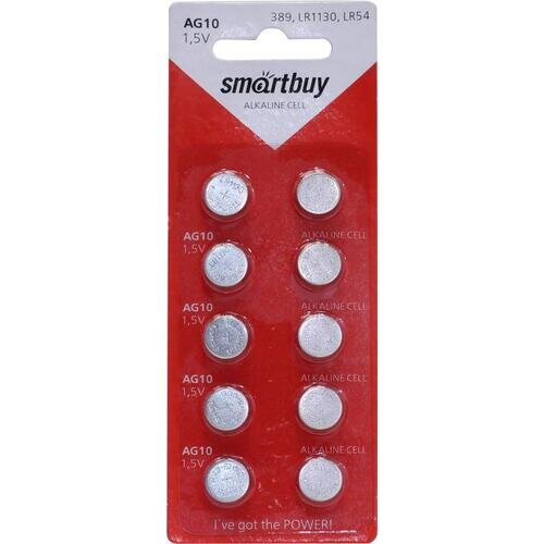 Батарейка LR54 (AG10, LR1130, 389) 1.5V SmartBuy Blister, 10 шт