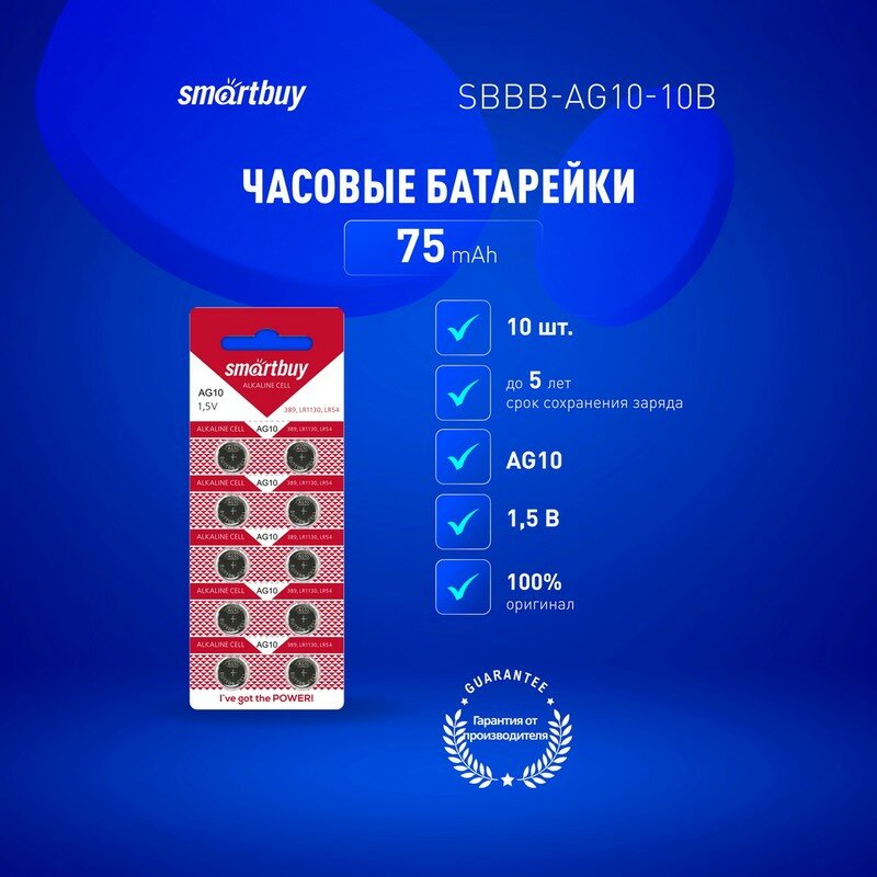 СохранитьЭлемент питания Smartbuy Alkaline Cell AG10 (LR54/ LR1130/ G10/ 189/ V389/ SR1130W) бл 10 интересное: