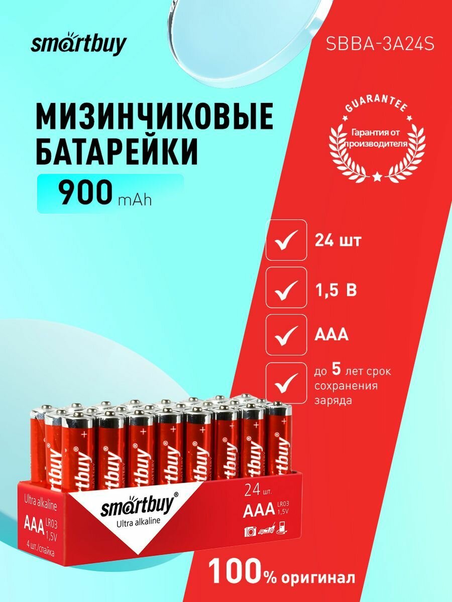 Батарейка SmartBuy AAA (LR03) алкалиновая, OS24, 24 шт. в упаковке