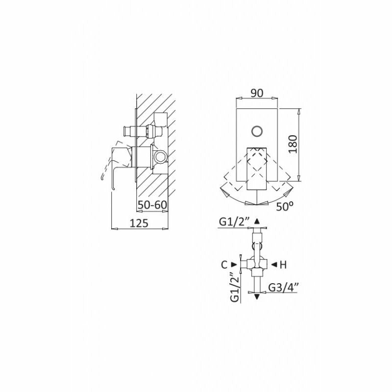 Встраиваемый однорычажный смеситель для душа с переключателем CEZARES PORTA-VDIM-01