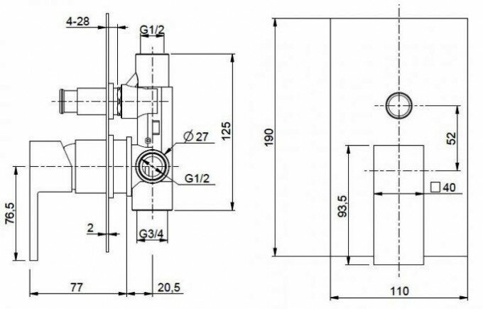 UNIKA-VDIM-01 Встраиваемый однорычажный смеситель для душа с переключателем, исполнение хром