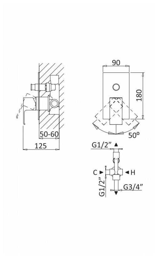 Смеситель для душа Cezares Porta VDIM-NOP (с внутренней частью)