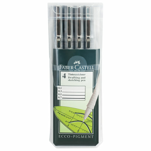 Набор капиллярных ручек Ecco Pigment, ширина линии 0,1 мм, 0,3 мм, 0,5 мм, 0,7 мм, цвет черный, Faber Castell