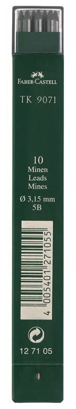 Сменные стержни для цанговых карандашей Faber-Castell TK 9071 (3.15мм, 5B) 10шт. (127105)