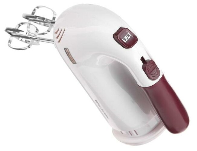 Миксер WILLMARK WHM-6023ST, ручной, 400 Вт, 5 скоростей, 2 насадки, подставка бордо