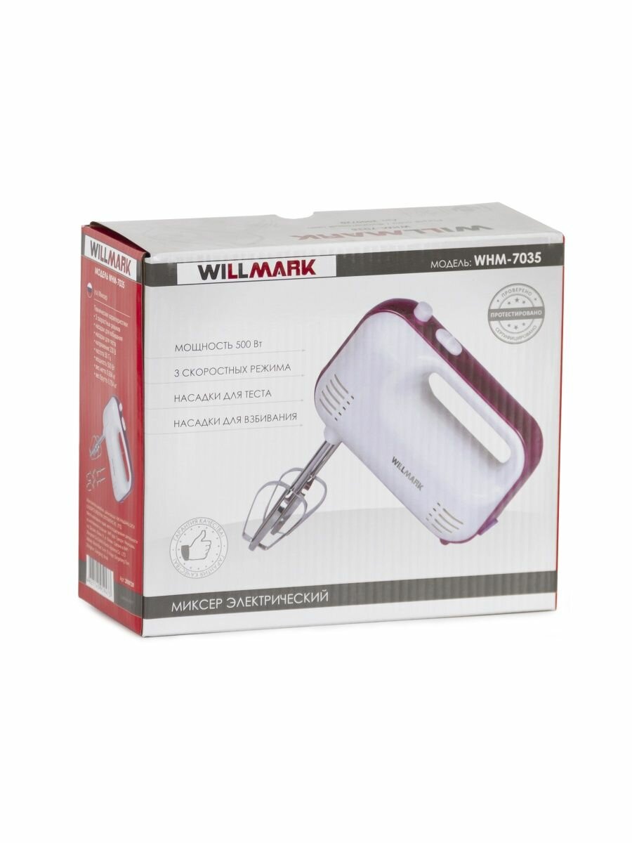 Миксер WILLMARK WHM-7035 (500Вт, 3 скоростей,2 вида насадок, фиолетовый)