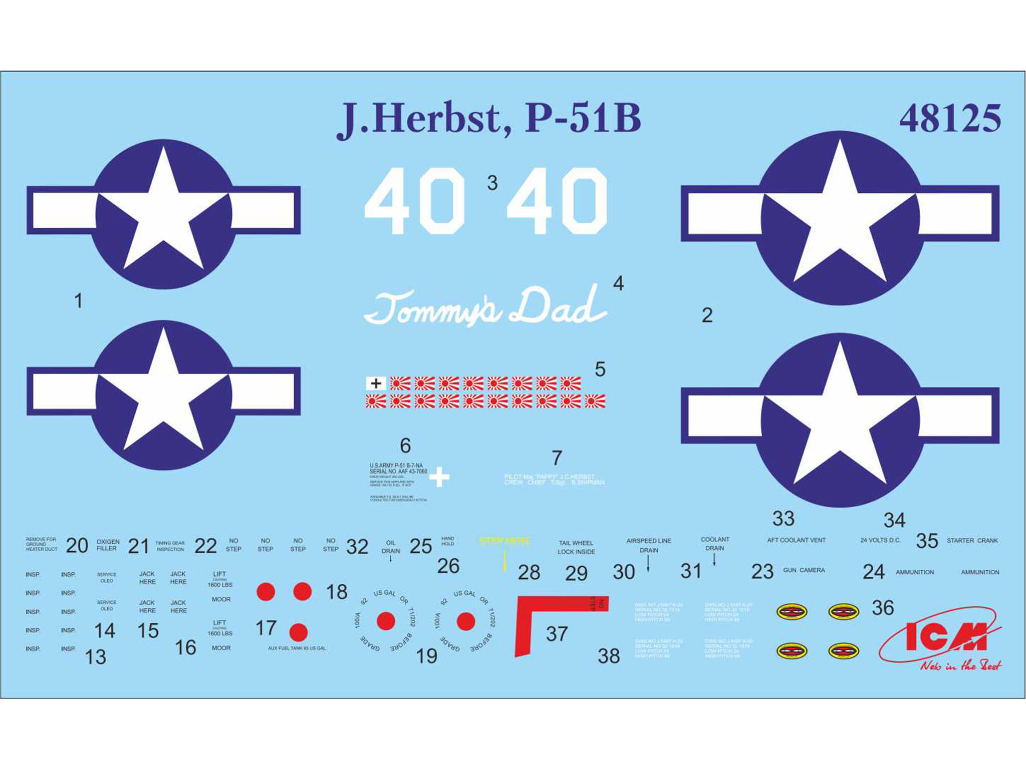 48125 Мустанг Р-51 В, американский истребитель с пилотами и техниками
