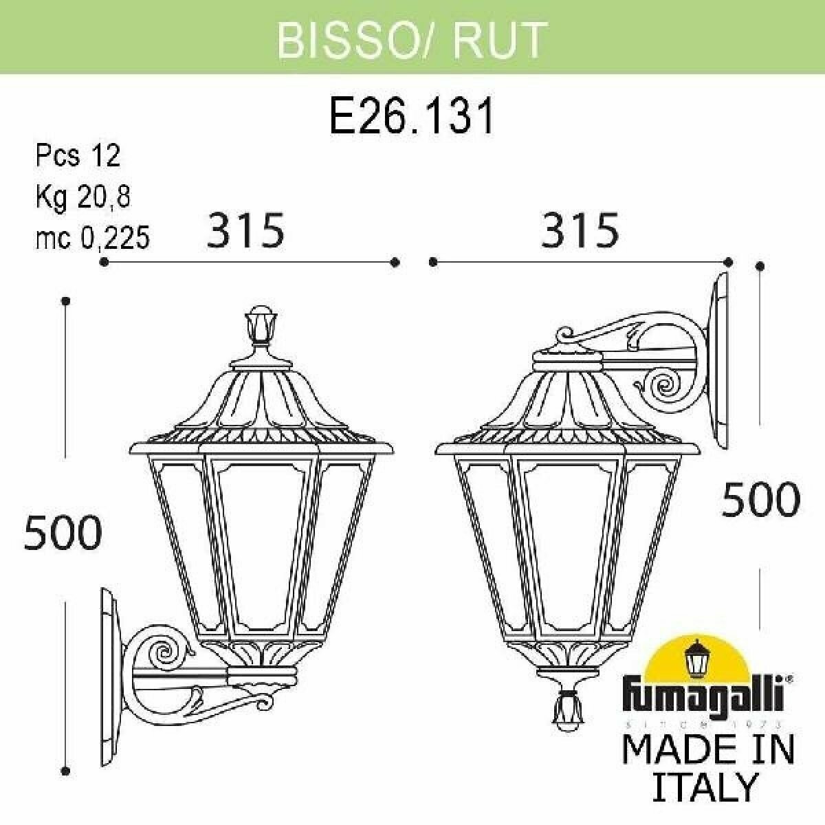 E26.131.000.AYF1R Уличный настенный светильник Fumagalli, Bisso/Rut
