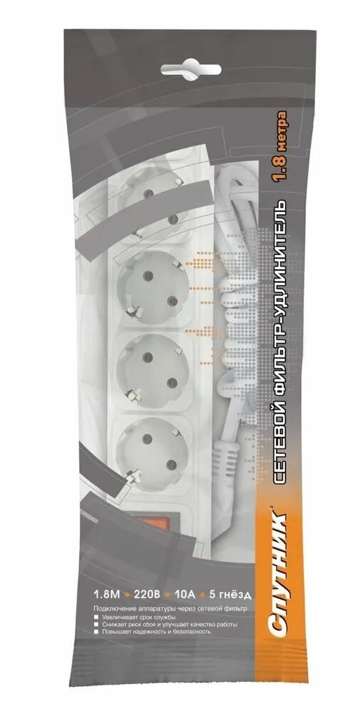 СохранитьСетевой фильтр - удлинитель Спутник SP-518 1,8м, белый интересное: