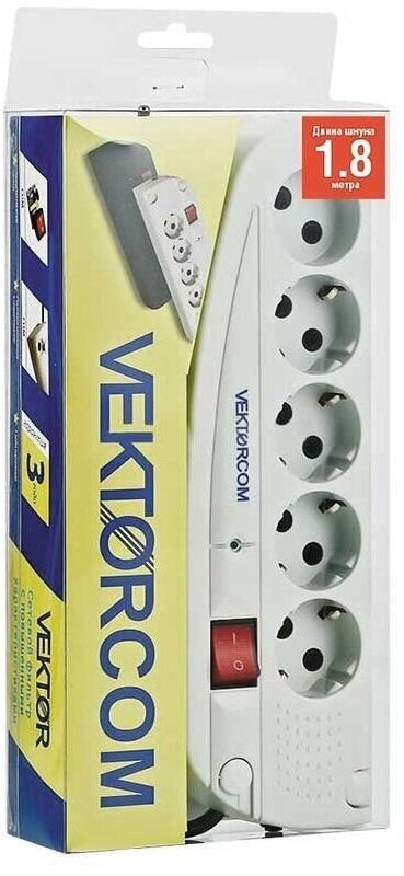 Сетевой фильтр "Vektor COM", 1,8 м, 5 розеток