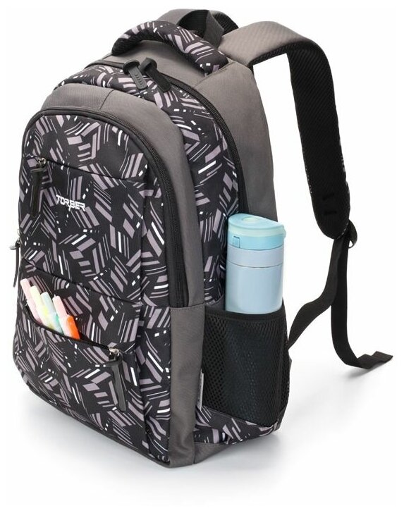 Школьный рюкзак для мальчика, девочки TORBER CLASS X, серый с орнаментом, полиэстер, 45 x 30 x 18 см, 17 л (T2602-GRE)
