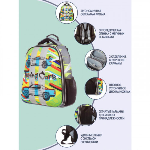Ранец №1SCHOOL 1061322 Basic Tuning Cars 2 отделения эргономичная спинка интересное: